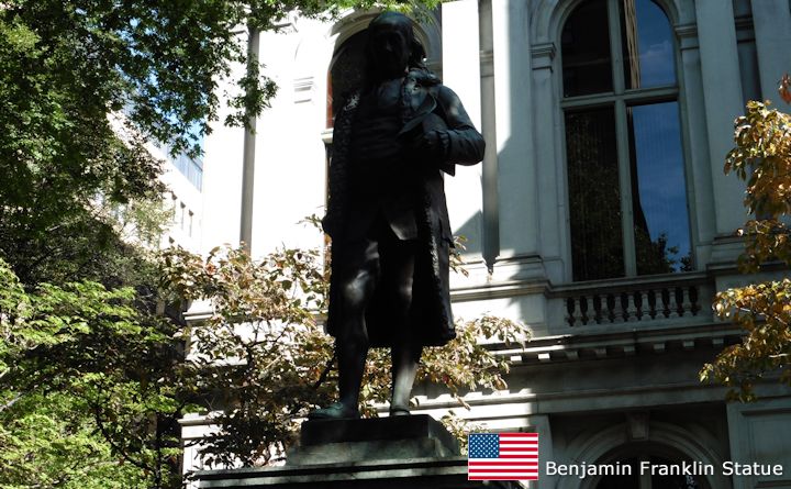 | A statue standing in front of Boston's Old Town Hall is Benjamin Franklin statue. Benjamin Franklin is known as the drafter of the American Declaration of Independence and is a $ 100 bill person. The reason for the bronze statue is that Benjamin Franklin was born and raised near the old town hall. The pedestal is engraved with a statement praising his feat. |