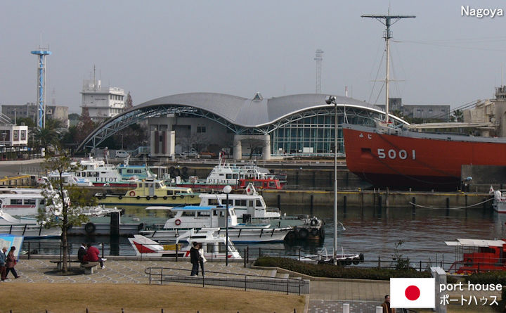 | The port house in the square next to the Antarctic observation ship, Fuji. Nagoya Port has few places to rest, so it is used as a place where you can eat and rest. |
