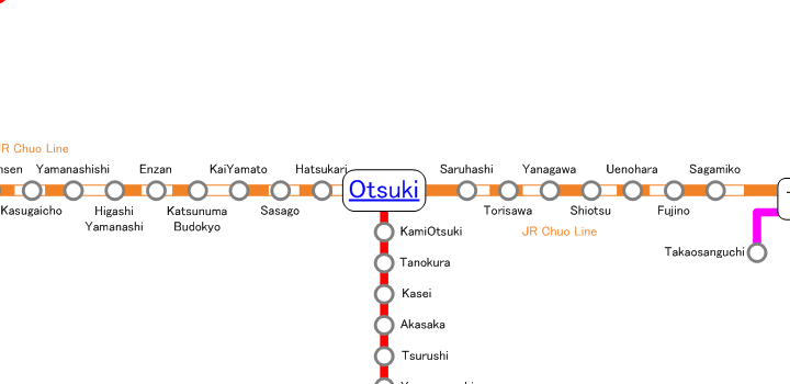 | Otsuki Station, located in Otsuki City, Yamanashi Prefecture, is a connecting