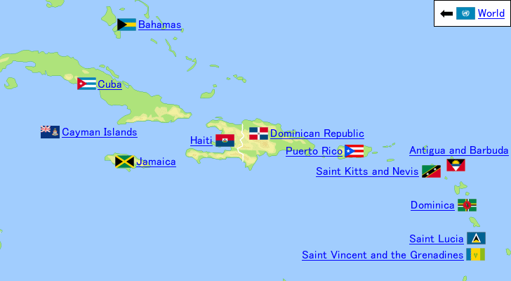 Cayman Islands Antigua and Barbuda Cuba Jamaica Saint Lucia Saint Vincent and the Grenadines Saint Kitts and Nevis Dominican Republic Dominica Haiti Bahamas Puerto Rico World