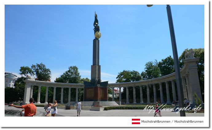 | The park with a fountain near the entrance to Belvedere Palace is Hochstrahlbrunnen. Hochstrahlbrunnen also has a Soviet War Memorial, which is also a gathering place for people seeking a place to relax during breaks. |