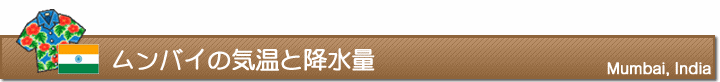 | ムンバイの気候は年間を通じて高温多湿の気候となります。特にモンスーンの影響がある6月から9月は降水量が多く悪天候が続きます。ベストシーズンは11月から2月となります。 | ||||||||||||||||||||||||||||||||||||||||||||||||||||||||||||||||||||||||||||||||||||||||||||||||||||||||||||||||||||||||||||||||||