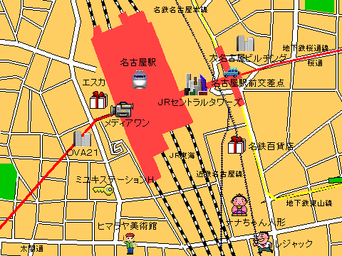 ・・・デザイン都市・名古屋を象徴する建造物の一つ。名古屋駅を出て正面の交差点の真ん中に建っている先のとがった建造物。ここがロータリーの中心となっており、毎日数え切れないほどの自動車がこの周りを回ってUターンなどをしている。