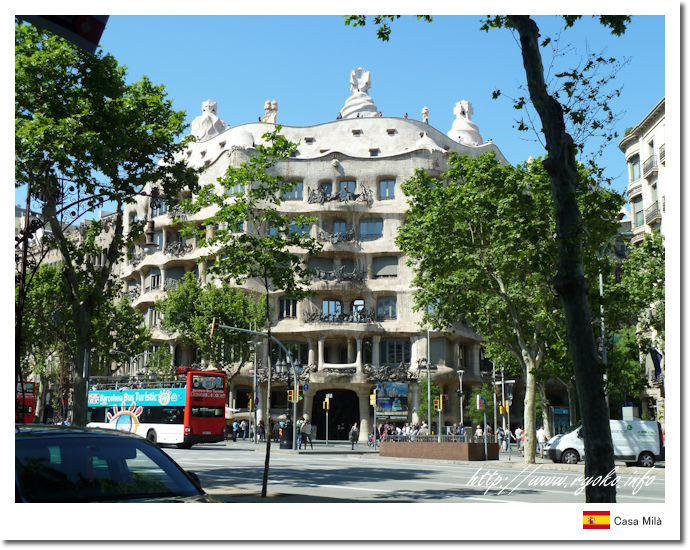 | バルセロナ市内にある世界遺産の一つが、カサ・ミラ。 カサ・ミラは丸みを帯びた独特な外観からも分かるように、世界的な建築家であるガウディによって設計された、実業家ペレ・ミラ氏の邸宅である。一つ一つ異なるバルコニーは地中海の波と海藻をイメージして造られたといわれている。建物内部は見学することもでき、バルコニーや屋上にも行きバルセロナ市街の風景を見ることもできる。 バルセロナの目抜き通りであるグラシア通りあるため、とても行きやすい場所なので、必ず寄ってみよう! |
