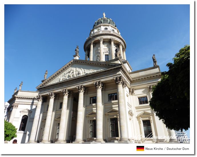 | フランス大聖堂の対面にある、ドイツ大聖堂。 フランス大聖堂とは外観も対になっていることから、とてもわかりにくい。また一般的にドイツ大聖堂というと、ベルリン大聖堂を指すことが多く現地では間違えないようにしたい。とはいいつつも、立派な外観は見所のひとつで、フランス大聖堂、コンサートホールとともに見学しよう。 |