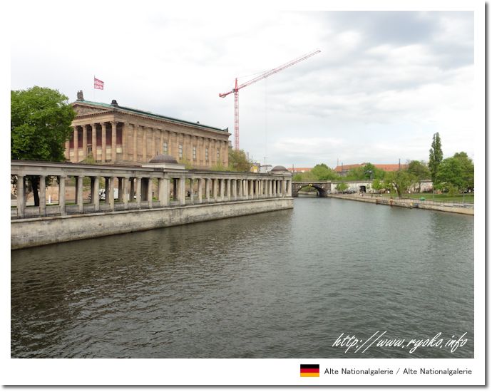 | 博物館島でも大きな敷地を占める施設の一つが、旧国立美術館。 旧国立美術館は1861年に開館した歴史ある美術館で、古典主義、ロマン主義、印象派などの絵画を中心に展示されている。観光しては、趣のある外観と、施設前に広がる整備された広い芝生、周囲にある無数の柱が見どころとなっていて、記念写真にはこれらを入れた撮影をしたい。 |