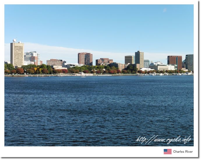 | ボストン市街地の中心部を流れる大きな川が、チャールズ川。 チャールズ川に沿ってマサチューセッツ工科大学などもあり、風景を楽しみながら川沿いを散策できる。特にお勧めが秋の紅葉のシーズンで、対岸に立ち並ぶ紅葉は絶景といえる。 またチャールズ川ではマリンスポーツも盛んで、ヨットやカヤックなども見ることができ、風景のみならず楽しむことができる。 |