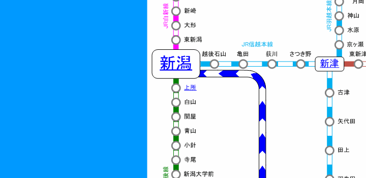 上所駅は新潟県新潟市中央区にあるJR越後線の駅で、2024年に開業した比較的新しい駅です。新潟駅に近い立地にあり、市内中心部へのアクセス向上を目的に整備されました。駅周辺には住宅地や学校、商業施設が広がり、通勤・通学の利便性を高める地域の新たな拠点となっています。新潟市中心部に近いことから、今後の街づくりとともに発展が期待される注目の駅となっています。