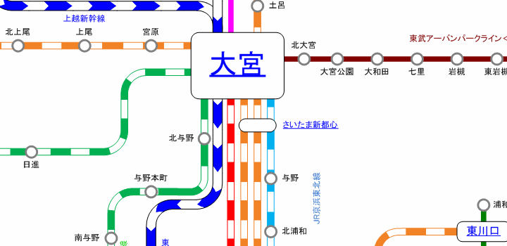 | さいたま新都心駅は埼玉県さいたま市中央区にあるJR東日本の駅で、JR京浜東北線、JR東北本線(宇都宮線)、JR高崎線が利用でき、大宮や東京方面へのアクセスが良く、通勤・通学に多く使われている利便性の高い駅です。駅周辺には大型商業施設やオフィスビルが集まり、さいたまスーパーアリーナも近く、イベント開催時は特ににぎわいを見せます。一方で、整備された街並みと広い歩道が特徴で、都会的でありながら落ち着いた印象を持つエリアです。 | |||