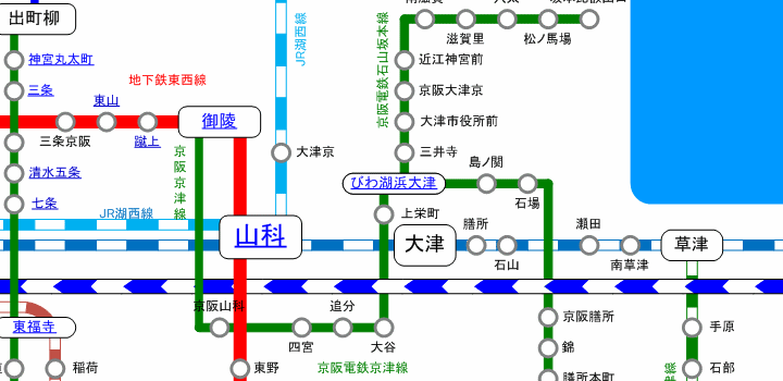 彦根駅は京阪の京阪京津線、京阪石山坂本線が乗り入れている駅で滋賀県大津市浜大津1にあります。びわこ浜大津駅はその名の通り、駅からすぐの場所に琵琶湖がありクルーズなど琵琶湖観光の最寄り駅の一つとなります。