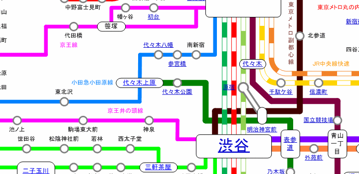 参宮橋 代々木 代々木公園 原宿 千駄ヶ谷 信濃町 国立競技場 明治神宮前 表参道 代々木上原 代々木八幡 初台 新宿 京王線 京王井の頭線 小田急小田原線 東京メトロ副都心線 東京メトロ丸の内線 JR中央線快速 新宿御苑前 二子玉川 三軒茶屋 渋谷 外苑前 乃木坂