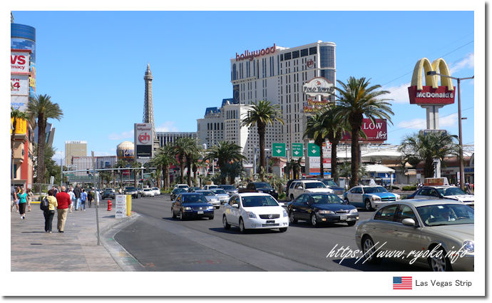 ラスベガスのストリップは世界的に有名なメインストリートで、豪華ホテルやカジノ、ショー会場が約7kmにわたり立ち並ぶ観光の中心地です。昼は個性豊かなテーマホテル巡りやショッピングを楽しめ、夜になるとネオンとライトアップが街全体を包み込みます。噴水ショーや路上パフォーマンスなど見どころも多く、歩くだけでエンターテインメントを体感できる、まさにラスベガスを象徴する通りです。