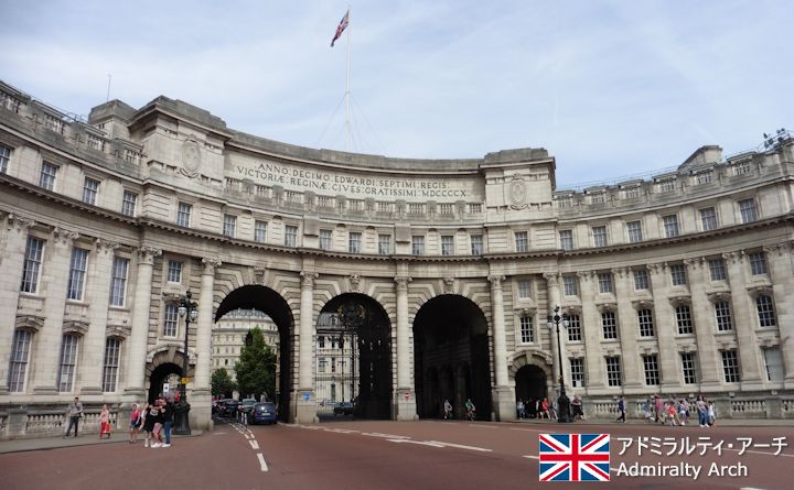 ![]() ![]() ![]() ![]() ![]() バッキンガム宮殿側から見た、アドミラルティ・アーチ ![]() トラファルガー広場側から見た、アドミラルティ・アーチ |