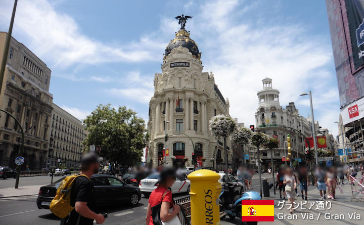 マドリードのメインストリートである、グランビア通り。