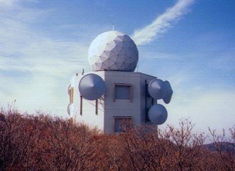 ・・・山上公園にある雨量レーダー。特に中には入れるなどないが、山上公園のシンボルとしての役割を担っている。