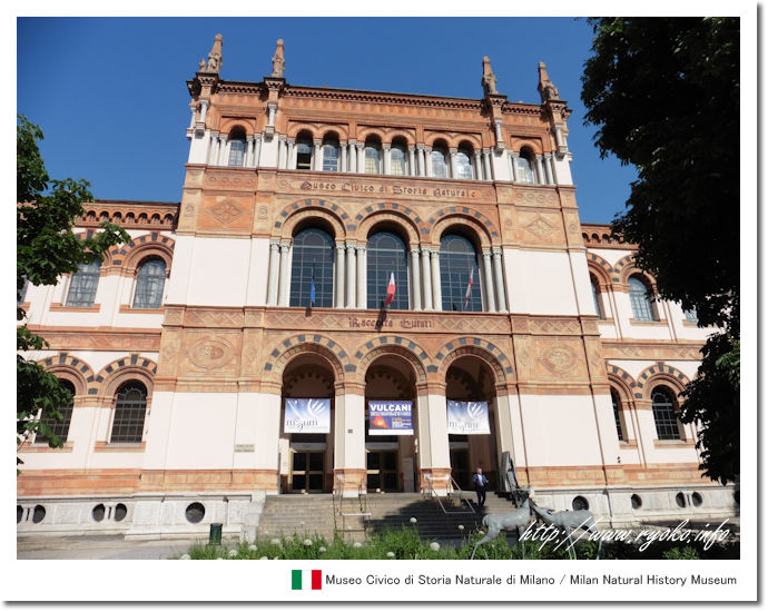 | モンタネッリ公園内にある、ミラノ市立自然史博物館。 自然科学者のジュゼッペ・ダ・クリストフォリスの膨大なコレクションが展示されており、恐竜の骨格をはじめ、はく製や化石や鉱物などが展示されています。ファミリーで行くと楽しい施設でもあります。 |