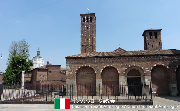 | ロマネスク様式のレンガ色の外観が特徴的な教会が、サンタンブロージョ教会。 サンタンブロージョ教会はミラノ最古の聖堂で386年にアンブロージョによって建てられました。その後11~12世紀に再建され現在の建物となりました。教会内には金細工の祭壇などもあり、見どころとなっています。 |
