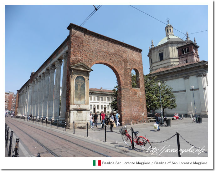 | ミラノ最古の教会の一つである、サン・ロレンツォ・マッジョーレ聖堂。 4世紀から5世紀に建てられたサン・ロレンツォ・マッジョーレ聖堂の見どころは教会だけではなく、広場にある並んだ柱。古代ローマ時代に建てられたこの柱は16本にもなり、記念撮影スポットとして多くの観光客が訪れています。 |