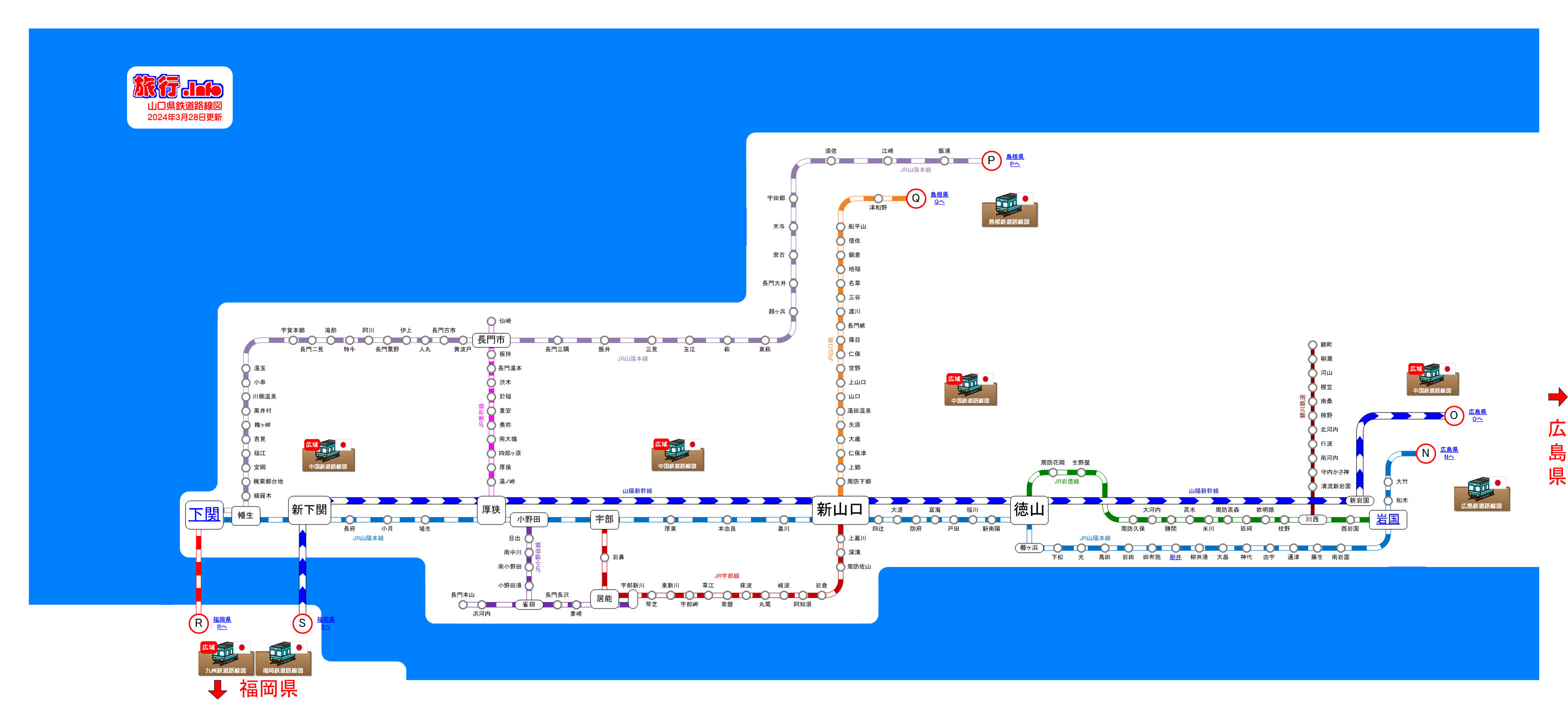 - 本由良 - 厚東 - 宇部 - 小野田 - 厚狭 - 埴生 - 小月 - 長府 - 新下関 - 幡生 - 下関 |