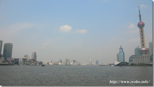 | 上海市街地を流れる大きな川が、黄浦江。黄浦江は、川幅400mにもなる大きな川だが、東シナ海にたどり着くまでに長江と合流する支流である。黄浦江では観光船もあるので、乗船して楽しむことができる。 | ||