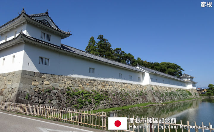 | 彦根城への入口にあたる場所にある、彦根市開国記念館。 彦根市開国記念館は1960年に井伊直弼の没後100年を記念する事業として作られました。建物は彦根城の佐和口多聞櫓を再現したもので、その美しい外観のある景色は絶景スポットの一つとなっています。館内には彦根城に関する展示物があり井伊家や彦根城に関することを学ぶことができます。 |