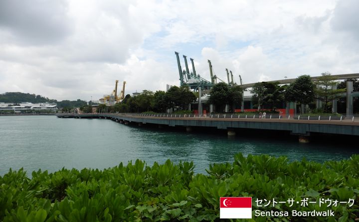 ![]() 本土とセントーサ島を結ぶ歩道橋が、セントーサ・ボードウォーク。 セントーサ・ボードウォークはVivoCityの東側から入場することができ、セントーサ島のWaterFront付近が出口となっている。逆からでも入場できる。 橋は屋根が付いている部分と付いていない部分があり、お勧めは海が一望できる屋根の付いていない部分で、景色を堪能しながら散策するのがいい。 散策時間は15分程度。途中には動く歩道もあり疲れた時には利用しよう。 ![]() ![]()
