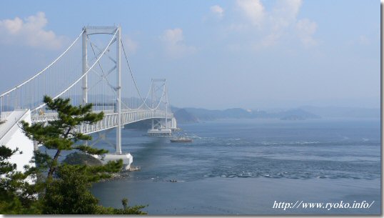 | 大鳴門橋をメインとして、大鳴門橋架橋記念館などが集まっている一体の公園が鳴門公園。鳴門公園からは、いろいろな角度から大鳴門橋を眺めることができ、運がよければ渦潮も見ることができる。 いろいろな施設も充実しているので、飽きることなく遊ぶこともできる。 http://www.uzunomichi.jp/ |