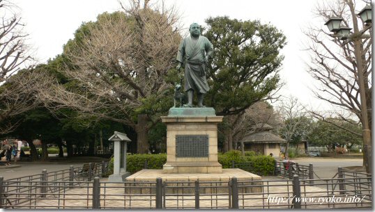 上野公園の一角にある西郷隆盛像。