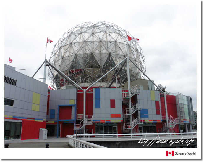 | 巨大な球体の建物がシンボルの、テラス・ワールド・オブ・サイエンス。 テラス・ワールド・オブ・サイエンスのシンボル的な存在の球体は、バンクーバー万博の際に建てられたものを利用しています。この球体の中では科学を体験型で子供から大人まで楽しむことができます。また科学のほか、目の錯覚を利用した展示やパズルもあり、一日中楽しめる施設となっています。 スカイトレインの駅からも近く、また公園や川もあり、休日の憩いの場としても活用されています。 |