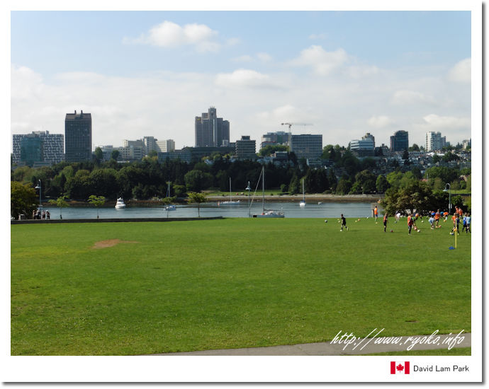 | バンクーバーのフォールス川沿いにある、デイビッド・ラム公園。 緑の芝生広場が美しいデイビッド・ラム公園には、休日になると多くの地元の人がスポーツや憩いの場を求めて訪れています。特にこの公園は眺望がすばらしく、芝生の緑と川の青、そこに浮かぶヨット、背景には近代的なビルを見ることができる絶景です。 |