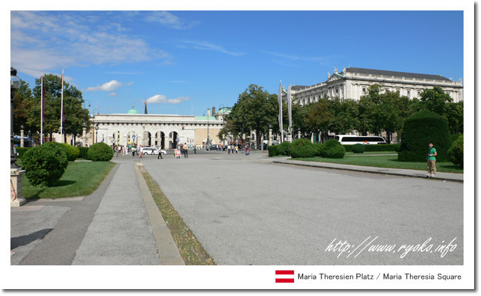 | オーストリアの歴史の中で欠かすことのできない人物の一人である、マリア・テレジア。 そのマリア・テレジアの像を中心として左右に整備された芝生と美術史美術館、自然史博物館が建っている広場が、マリア・テレジア広場。マリア・テレジアは、「国母」と呼ばれた女帝で、23歳の若さでハプスブルク家の当主となり、その後、オーストリア継承戦争や七年戦争などを経て、オーストリアの近代化に大きく貢献した人物で、オーストリア国内での人気も高く、マリア・テレジア広場に限らず、街の至る所で「マリア・テレジア」という名前を耳にすることが多い。 |